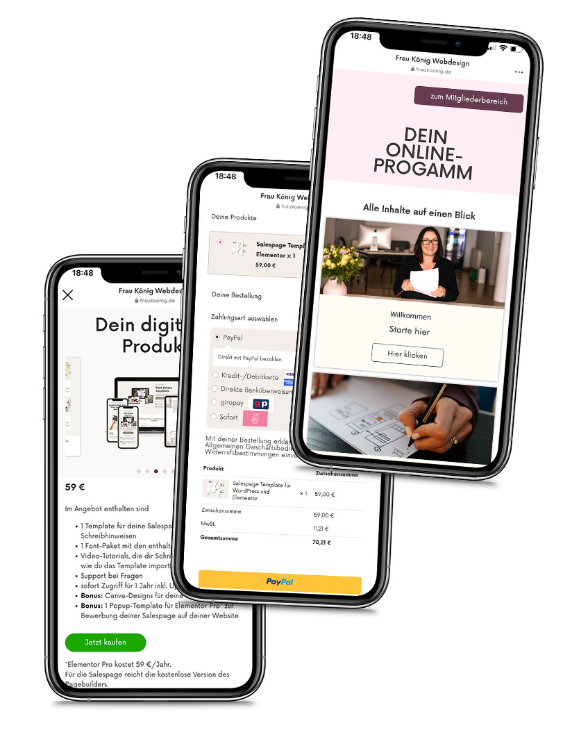 Du bekommst Templates deiner Salespage, deiner Kursseiten und noch mehr.