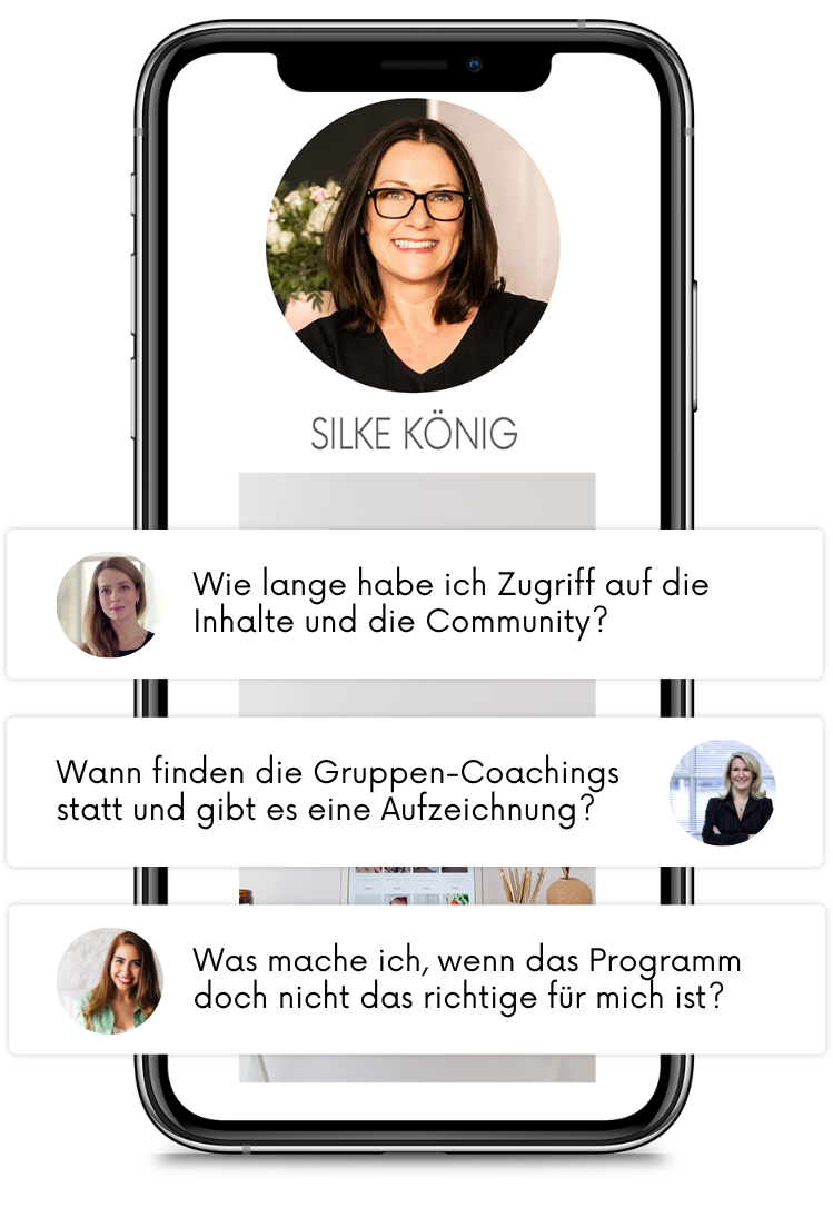 Du bekommst bei allen Fragen über die Gruppen-Meetings Unterstützung durch mich und mein Team. Darüber hinaus sind wir immer an deiner Seite und beantworten deine individuellen Fragen schnell in der Programm-Gruppe.