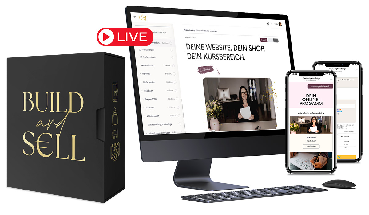 Der erprobte Fahrplan für den Aufbau, die Vermarktung und den Verkauf deiner digitalen Angebote über deine eigene WordPress-Plattform – inkl. VIP-Begleitung.